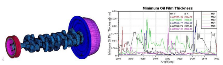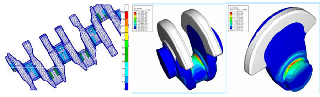 曲軸優(yōu)化設(shè)計(jì) ? 強(qiáng)度/疲勞 ? 彎振/扭振/縱振 ? 模態(tài)/低階固有頻率 ? 油膜厚度、軸心軌跡 | ![]() |
