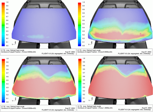 Mindware Engineering使用 Fluent對(duì)某車(chē)型進(jìn)行了瞬態(tài)除霧仿真,對(duì)優(yōu)化設(shè)計(jì)空調(diào)除霧系統(tǒng)帶來(lái)了幫助。