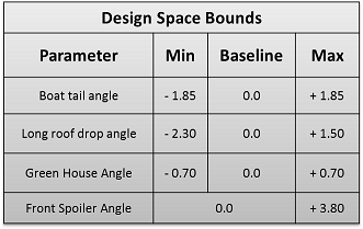 Volvo公司針對(duì)XC60原車(chē)外形設(shè)定了4處可以進(jìn)行參數(shù)化變動(dòng)的變量,并在變量的設(shè)計(jì)空間內(nèi)定義了50個(gè)設(shè)計(jì)點(diǎn)進(jìn)行DOE分析,最終通過(guò)優(yōu)化算法得到了在設(shè)計(jì)空間內(nèi)的最優(yōu)氣動(dòng)外形設(shè)計(jì)方案,這套仿真流程有著極強(qiáng)的工程實(shí)用價(jià)值。