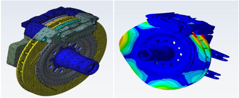 剎車(chē)系統(tǒng)由操控系統(tǒng)、液壓系統(tǒng)和助力系統(tǒng)組成,它是汽車(chē)上最主要的安全裝置之一。其整體性能對(duì)汽車(chē)的操作穩(wěn)定性及人員的安全性都有著直接的影響。剎車(chē)系統(tǒng)的設(shè)計(jì)研發(fā)主要集中在制動(dòng)器、調(diào)整臂、真空助力器、閥類(lèi)控制及保護(hù)等部件,在CAE分析中通常需要關(guān)注這些結(jié)構(gòu)的強(qiáng)度和變形分析、振動(dòng)和噪聲分析、疲勞壽命分析、溫度場(chǎng)分析、熱應(yīng)力分析等。