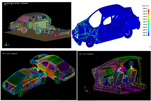安全、清潔、節(jié)能是現(xiàn)代汽車(chē)設(shè)計(jì)的三大主題。汽車(chē)安全分主動(dòng)安全(防止事故)和被動(dòng)安全(一旦發(fā)生事故對(duì)乘員的保護(hù))。被動(dòng)安全的重要性已經(jīng)成為行業(yè)和用戶(hù)的共識(shí)。在汽車(chē)投入市場(chǎng)之前,廠家對(duì)整車(chē)進(jìn)行碰撞試驗(yàn),其目的就是為了提高汽車(chē)被動(dòng)安全性能。但是在產(chǎn)品開(kāi)發(fā)中,如果廠家僅依靠試驗(yàn)研究進(jìn)行汽車(chē)安全設(shè)計(jì),保證碰撞檢測(cè)合格,那么必將面臨巨大的研發(fā)費(fèi)用和時(shí)間。應(yīng)用ANSYS LS-DYNA高度非線(xiàn)性瞬態(tài)動(dòng)力分析功能可高效仿真各型汽車(chē)以任意的速度和角度與任意的物體發(fā)生碰撞的整個(gè)歷程,能分析在發(fā)生碰撞或緊急剎車(chē)時(shí)安全帶系統(tǒng)和安全氣囊系統(tǒng)對(duì)乘員的保護(hù)情況,從而優(yōu)化安全保險(xiǎn)裝置的設(shè)計(jì),提高汽車(chē)的安全性能。