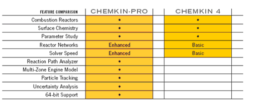 圖1.CHEMKIN-PRO與CHEMIN4 的功能比較