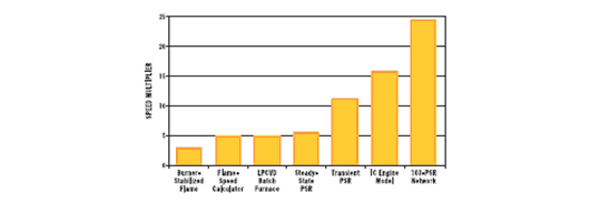 圖2. CHEMKIN-PRO對不同反應(yīng)模型計(jì)算時間相對于CHEMKIN4.1的倍數(shù)