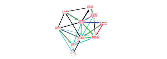 為了幫助用戶獲得關(guān)鍵的反應(yīng)過程框架,CHEMKIN-PRO提供了最新的反應(yīng)路徑分析器,采用交互式、可視化界面,直觀表達(dá)重要的反應(yīng)物和路徑,從而為機(jī)理開發(fā)和機(jī)理簡化快速、清晰地提供主要反應(yīng)路徑。